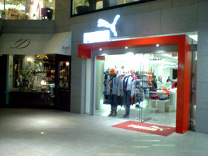 2005-01-05 プーマ 最近プーマがお気に入り、 何か昔のイメージと完全に変わったね、 なんかノラ猫がペルシャ猫になった感じ。 聞くところによると10年単位のブランド戦略が進行中なんだと、 今日もうっかりネットで買った、プーマのずっく、デザインサンプル品の非売品、、、浪費万歳。 写真は昨日立ち寄った原宿の直営店、何だかおしゃれね。